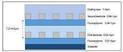 | | Cross section view of the metal mesh film with a single-sided, dual-layer wiring structure for use in touch sensors |