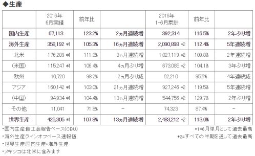 | ホンダ、2016年6月度 四輪車 生産・販売・輸出実績を発表 |