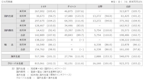 | トヨタ、6月および1-6月 生産・国内販売・輸出実績を発表 |