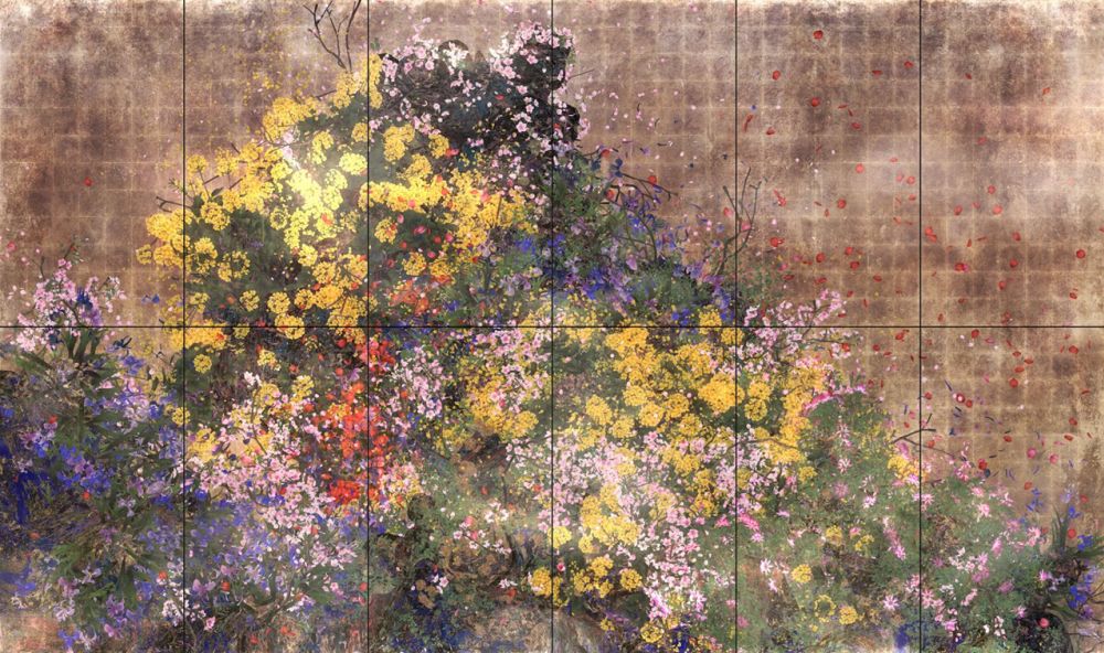 Flowers repeat the cycle of birth and death, proliferation and extinction, changing along with the seasons. As people touch them or as they are influenced by other works, the flowers fall and die. teamLab, Proliferating Immense Life - A Whole Year per Year © teamLab