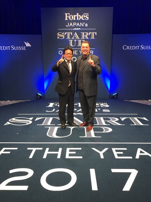 | | Yasuhiko Yurimoto, Founder & CEO of Global Brain, Trillium Lead Investor, and David M. Uze, CEO of Trillium at the Forbes Japan "RISING STAR START-UP OF THE YEAR 2017" Awards, November 21, at the Palace Hotel, Tokyo. |