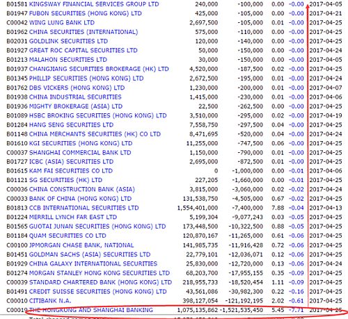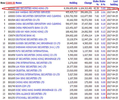According to data from 25 April 2017, 1.52154 billion shares were reduced from HSBC's position which accounted for 7.7% of total shares issued, and 417.23 million shares more than UBS's position. These data can either be seen as proof of the activities of short-sellers or ordinary transactions. Comparing the position change of UBS and HSBC, we can deduce that UBS has already made a profit from short selling but not HSBC.