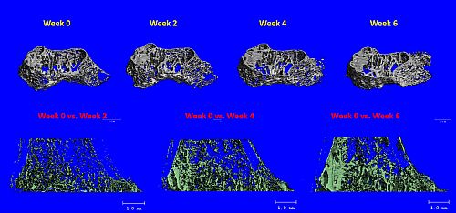 | | In vivo osteoblast-specific delivery of CKIP-1 siRNA could improve bone formation and increase bone mass of aged rats dramatically. (Copyright: Hong Kong Baptist University) |