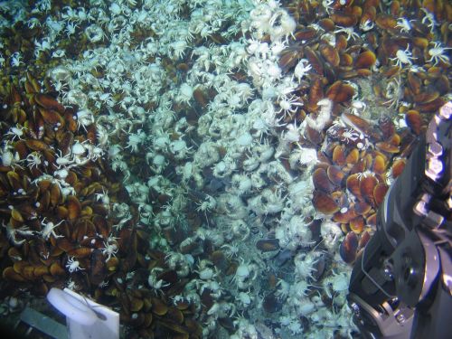 | | Deep-sea mussels viewed from Jiaolong's exploration of a methane seep in the South China Sea. |