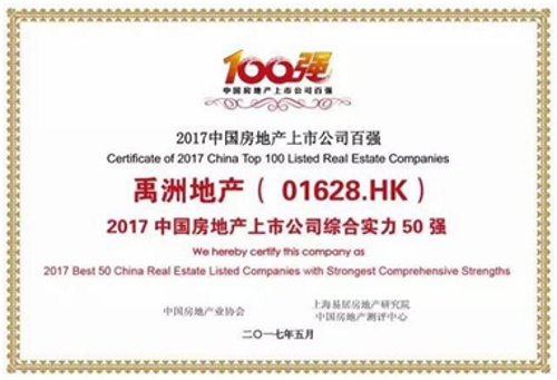 | | Yuzhou Properties ranked 36th in "2017 Best 50 China Real Estate Listed Companies with Strongest Comprehensive Strengths" |