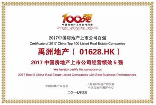 | | Yuzhou Properties ranked 2nd in "2017 Best 5 China Real Estate Listed Companies with Business Performances" |