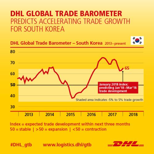 - DHL Global Trade Barometer forecasts accelerating trade growth for South Korea as high-tech innovation drives exports - Ocean freight volumes expected to rise significantly to feed manufacturing and infrastructure supporting South Korea's latest stage of economic development |