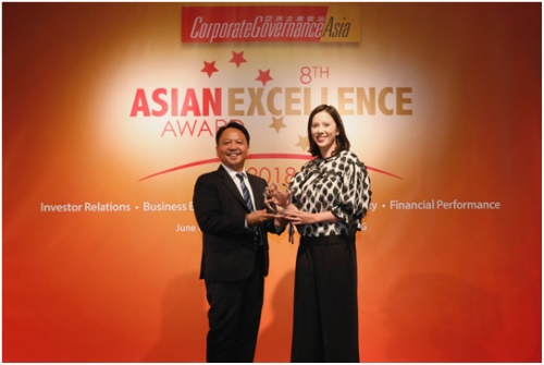 The 8th Asian Excellence Award, organised by Corporate Governance Asia recognises excellence in management acumen, financial performance, corporate social responsibility, environmental practices and investor relations.