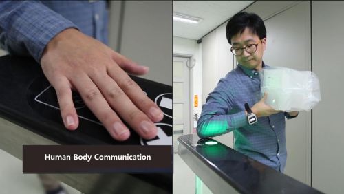 | | Body Communication: ETRI researchers have developed a technology that is able to transmit signals quickly and securely via the human body. |