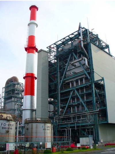 The SDA pitch-fired plant boilers developed by MHPS incorporate burners that allow the heated high viscosity SDA pitch to be combusted as a liquid without installing an additional system. The boilers utilize high-temperature corrosion countermeasures, mainly in the combustion area, to prevent corrosion caused by the high concentrations of sulfur and heavy metals. Further, to reduce the environmental load, the nitrogen oxide (NOx), sulfur oxide (SOx), and particulate matter in the exhaust gas is removed and recovered utilizing MHPS' leading-edge Air Quality Control System (AQCS) incorporating the flue gas desulfurization (FGD) system, for which MHPS had the top global market share(2) in 2018.