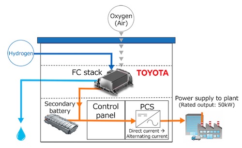 Toyota City, Japan, June 15, 2020 - (JCN Newswire) - Tokuyama Corporation (Tokuyama) and Toyota Motor Corporation (Toyota) announce that they have commenced verification tests, using by-product hydrogen, of a stationary fuel cell generator (FC generator) that makes use of the fuel cell system (FC system) installed in the Mirai Fuel Cell Electric Vehicle (FCEV). The FC generator has been set up within the Tokuyama Factory grounds in Shunan City, Yamaguchi Prefecture. The tests are scheduled to continue until the end of March 2022. By using components from the Mirai FC system, such as the FC stack, power control unit (PCU), and secondary battery, Toyota seeks to produce a high-performance generator at a reasonable price. Development on the FC generator was carried out jointly by Toyota and Toyota Energy Solutions, Inc.