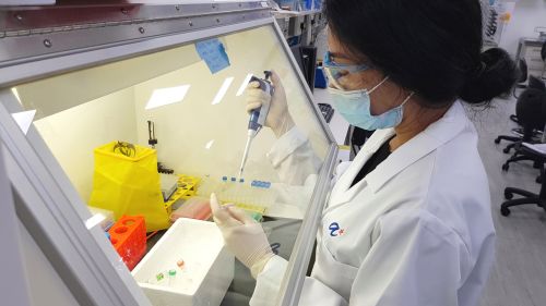 | | Scientists from the Experimental Drug Development Centre, A*STAR, preparing ETC-159 clinical samples for real-time Reverse Transcription-Polymerase Chain Reaction (RT-PCR) which amplifies the genetic material. (Photo credit: A*STAR) |
