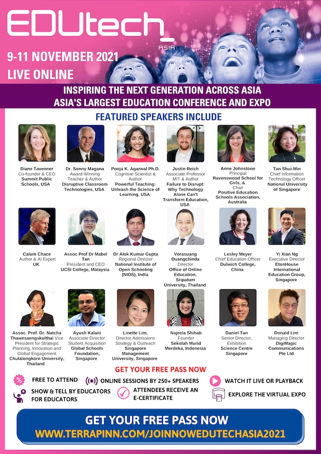 "Our mission, at EDUtech, is to inspire educators to inspire the next generation - globally. By bringing together educators and education professionals from around the world we hope to help level the education playing field for all and accelerate a change in the way that education is delivered. EDUtech Asia in November will be our largest virtual event to date with over 10,000 attendees. We have an incredible international keynote speaker lineup and a further 250 speakers plus our new Show and Tell segment with 88 presentations from teachers from around the region," said Sharon Roessen, Managing Director, Asia, Terrapinn Pte Ltd.
