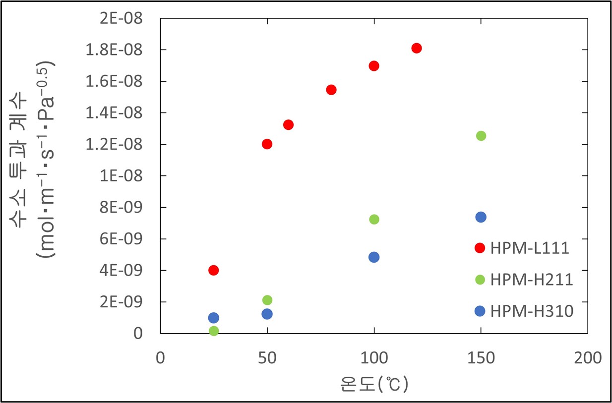 100℃ 전후 저온 영역에서 높은 수소 투과 성능 발휘