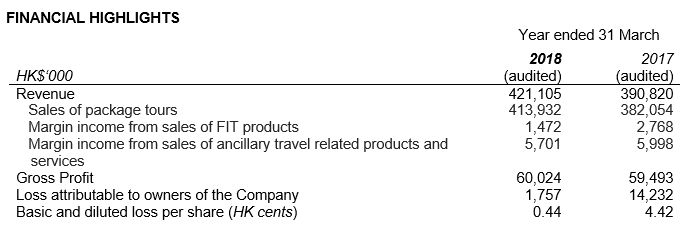 | WWPKG 2017/2018 annual loss decreased by 87.3% |