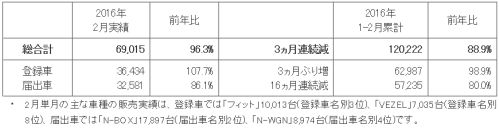 | ホンダ、2016年7月度 四輪車 生産・販売・輸出実績を発表 |