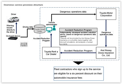 Toyota City, Japan, July 27, 2016 - (JCN Newswire) - Toyota Motor Corporation and Aioi Nissay Dowa Insurance Co., Ltd. will launch a discounted insurance fee service on August 1, 2016. This will be targeted at fleet contractors with 10 vehicles or more, and who implement the Accident Reduction Program1 that utilizes the TransLog telematics service2.