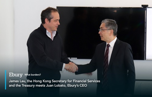 | | Ebury's CEO Mr. Juan Lobato greeted Mr. James Lau, the Secretary for Financial Services and the Treasury of the Hong Kong SAR. |