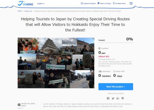 The project can be found at https://en.japankurufunding.com/projects/drive-japan/