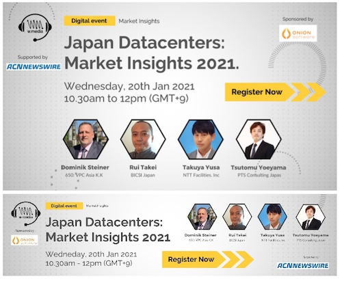 Japan, Jan 11, 2021 - (ACN Newswire) - Want to learn how Japanese datacenters are reshaping the country's economy? W.Media is hosting a webinar on Wednesday, 20th January, 10:30-12PM (GMT+9) dedicated to this explosive industry, with top-level speakers including: