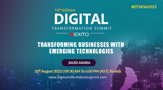 Riyadh, Saudi Arabia, Aug 1, 2022 - (ACN Newswire) - After successful 13 editions of Digital Transformation Summit, Exito (www.exito-e.com) is all set to host another milestone event - which serves as an ideal platform to enhance the experience to latest insights in "Transforming Businesses with Emerging Technologies" will address the importance of the full potential of technology as a driver for every organization to function securely, efficiently and effectively. In the highlight of this 13th Digital Transformation Event will provide a detailed overview of the existing and predicted trends within a ever-changing digital landscape across the Middle East.The Digital Transformation Summit is an ideal platform for IT leaders in Saudi Arabia to meet, interact, gain new insights and discuss various methods to overcome the glaring challenges faced by the digital industry. Through engaging panel discussions, insightful keynotes and immersive networking sessions, the event is sure to incite both thought and action at your organization. At the Digital Transformation Summit, Saudi Arabia?s top IT leaders will share their best practices and case-studies from their transformation journey. The event will be elated with insightful sessions by the qualified speakers hosting a vast experience in the Digital Transformation domain. An exclusive one-day closed door conference hosting 150+ Digital Leaders, CEOs, Mds, CIO, CTO, CISOs,CTO, CDOs, IT Heads etc with keynote presentations, fireside chats, panel discussions and live Q&A sessions from Saudi Arabia?s top Digital Transforamtion leaders as well as enhanced virtual networking experience throughout at the DT Summit Saudi Arabia. Digital Transformation Summit Saudi Arabia will explore and understand extensively the world of digital enterprises, as digital transformation no longer remains a catch-phrase. The focus will be on digitization with effective transformation through business case studies, pertinenet challenges and tailor-made solutions for your business requirements.