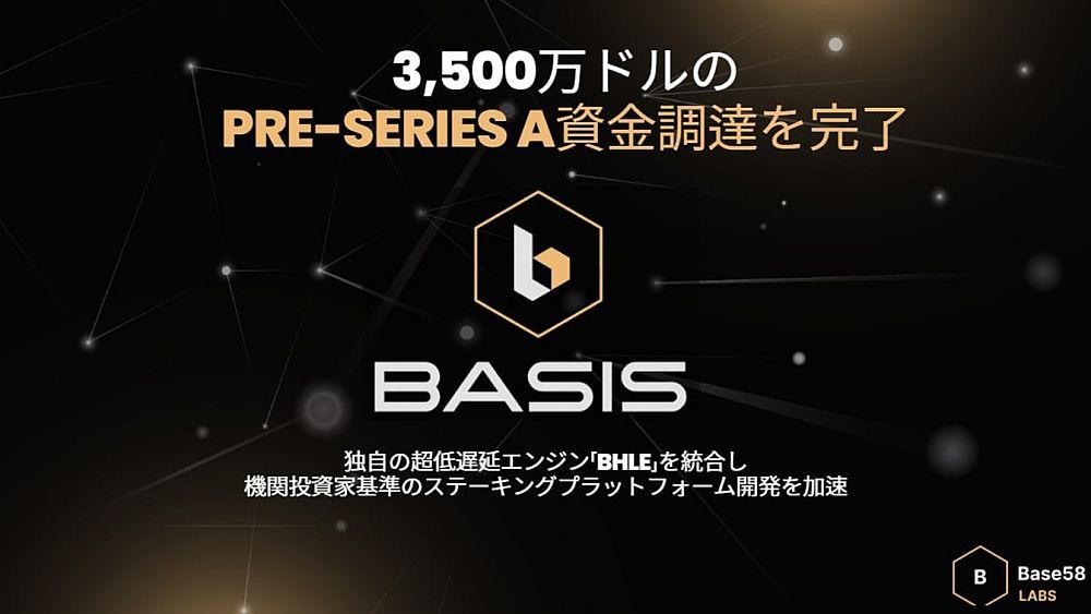 ロンドン, 2026年3月4日 - (JCN Newswire) - ロンドンを拠点とするBase58 Labsは、極めて戦略的な3,500万ドルのPre-Series A資金調達を完了し、同社の主力暗号資産ステーキングプラットフォームである「BASIS」の開発を大幅に加速させています。この新たな資金注入により、同社は社内のマイルストーンを前倒しで達成し、長年にわたる独自の技術を理論的アプローチの研究から、実際の商業展開へと移行させることが可能になります。