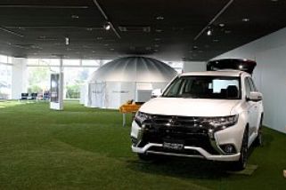 今回のリニューアルでは、工場内のPRスペースにおける映像・音響機器を改善し、わかりやすい情報発信に注力しています。加えて、給電機能を活用したアウトドア空間を演出することにより、今春増設した電動車両用充電器で充電中のお客さまに向けて、同工場の製品である『アウトランダーPHEV』の魅力を発信する場を設けました。